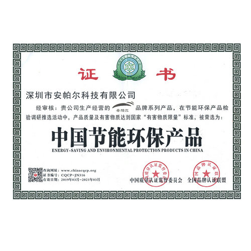 中國環境保護產品認證證書 APEG-AQ