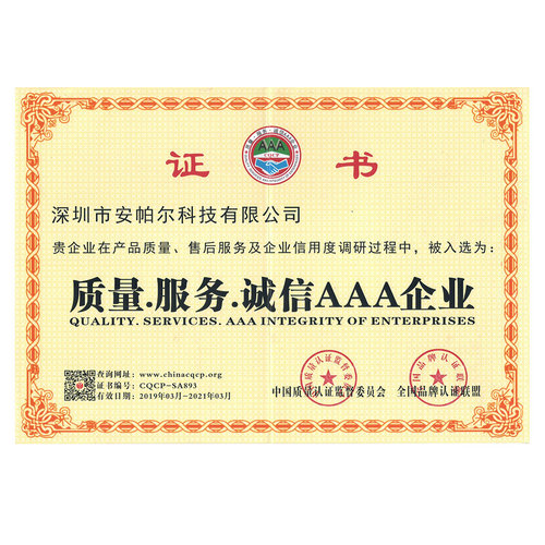 網站首頁 > 走進安帕爾 >資質證書 >公司資質