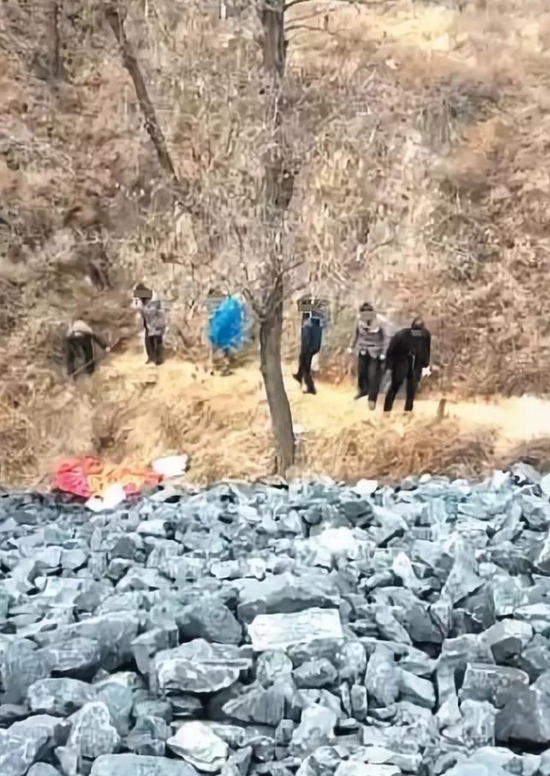 當天出事前半小時,周青峰他們扛著鐵鍬,從煤矸石坡下到溝底,打算運一具尸體。這具尸體是周青峰的姐夫劉練師,一天前來此撿炭倒地不起。周青峰以為姐夫摔死了,便找了其他村子的4名村民幫忙運尸回家。