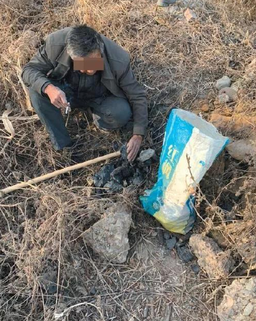 一位村民坐在丘上敲打,掀出一塊塊煤矸石,敲碎、分撿,裝進麻袋。他告訴記者,這些是今年煤礦的車倒下的,知道的村民會過來撿炭。“有的矸石已經被黃土蓋住了,有的就直接推進黃河里了。”他稱,村子后山上還有大片矸石場,更多的村民會去那里撿。