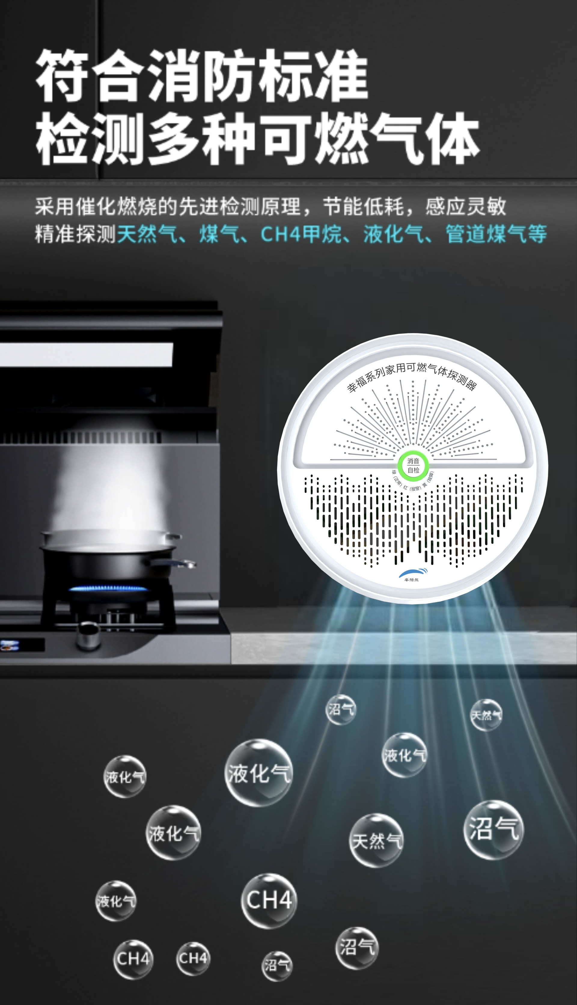 ☆  選用行業領先高性能低功耗傳感器,兼顧性能與功耗。最大可同時支持2種檢測類別,杜絕家庭氣體安全隱患盲區;